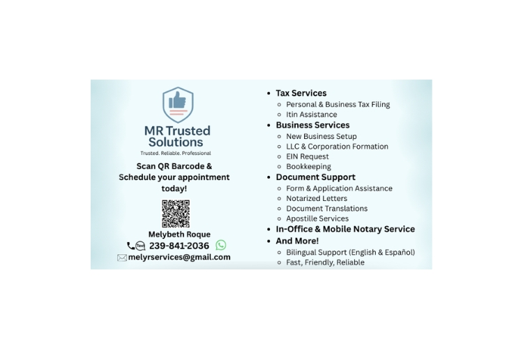 Personal & Business Taxes, Itin App, New Business Setup LLC & Corporation Formation, EIN Request, Bookkeeping, Application Assistance, Notary Service and more.
